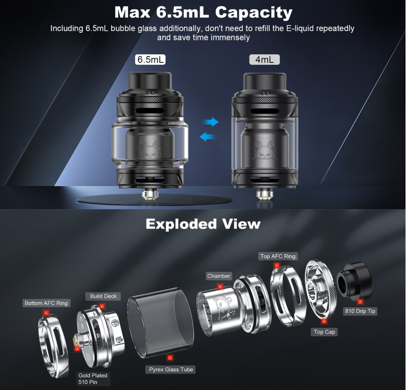 Este dispositivo ha sido mejorado para que el aporte tanto de sabor como de vapor sea aún mayor respecto a su antecesor, para ello han creado un deck dual coil sin postes más espacioso para que podamos instalar nuestras resistencias de una forma fácil y cómoda.