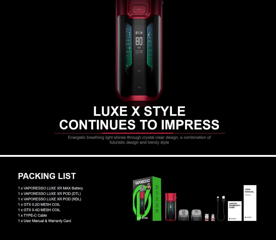 El Vaporesso Luxe XR Max se destaca en el mercado actual por su combinación única de elegancia, rendimiento y durabilidad. Con su batería de larga duración, potencia ajustable y capacidad generosa de líquido, se posiciona como una opción atractiva para los usuarios que buscan una experiencia de vapeo excepcional.