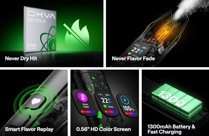 El OXVA XLIM PRO 2 DNA es el primer pod del mercado equipado con el chip DNA de Evolv, ofreciendo un control de temperatura ultra preciso, protección contra caladas secas y la innovadora función Replay para repetir tu calada perfecta. Con una batería de 1300 mAh, pantalla HD de 0,56" y compatibilidad con cartuchos de acero inoxidable, este dispositivo redefine la experiencia de vapeo para usuarios exigentes que buscan sabor constante, seguridad y personalización total.