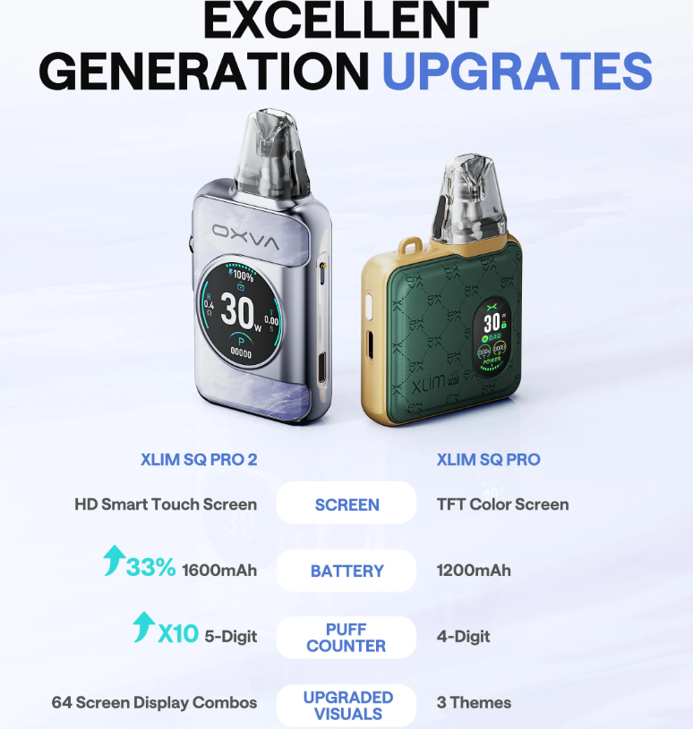 El Xlim SQ Pro 2 de Oxva es la evolución definitiva de su antecesor, diseñado para ofrecer un rendimiento superior con un diseño compacto y elegante.