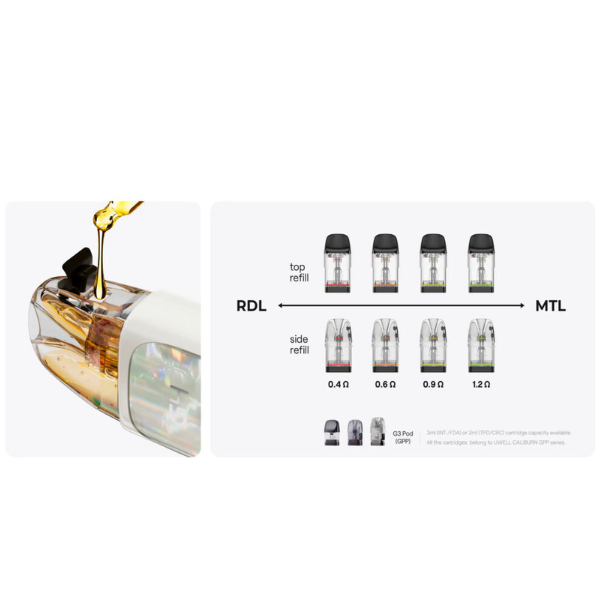 Este dispositivo es compatible con los nuevos cartuchos caliburn G4, que cuentan con la tecnología PRO-FOCS 4.0 para un aporte de sabor extraordinario, además de un aumento considerable de su vida útil. Estos cartuchos ofrecen un rellenado lateral práctico y limpio, que acompañado por la innovadora tecnología U² antifugas y anticondensación, minimiza derrames y mejora la durabilidad.