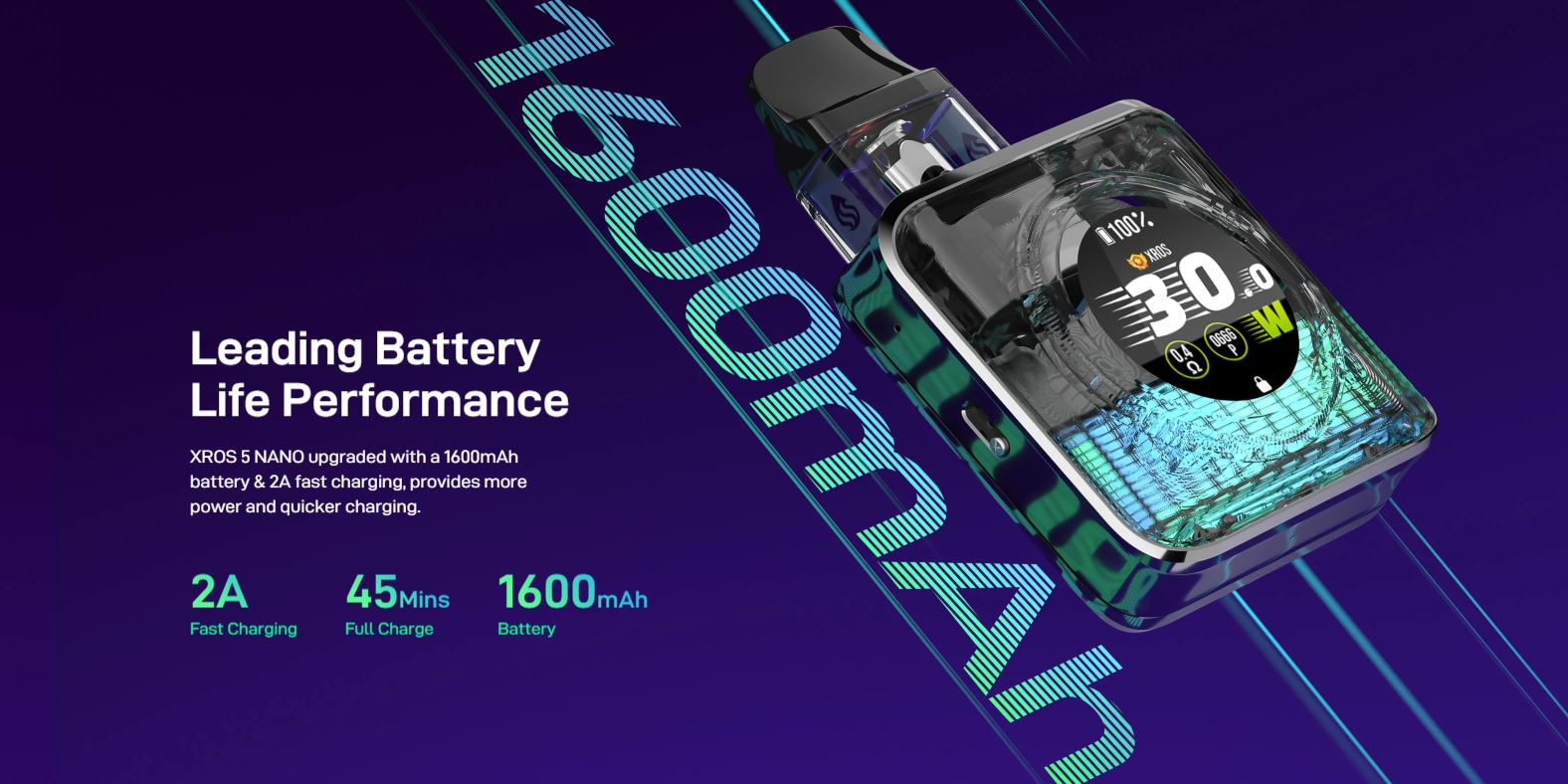 El Xros 5 Nano es compatible con todos los cartuchos de la serie Xros, incluidos los nuevos cartuchos Corex 3.0, que aportan un sabor mejorado, mayor consistencia, flujo de aire mejorado y una mayor durabilidad. Gracias a su resistencia con estructura de malla, el calor se reparte uniformemente para producir un vapor denso, suave y sabroso.