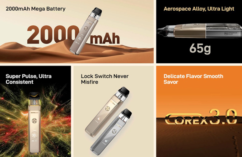 - Tecnología COREX 3.0: mejora la distribución del calor, la estabilidad del sabor y la duración de la resistencia.