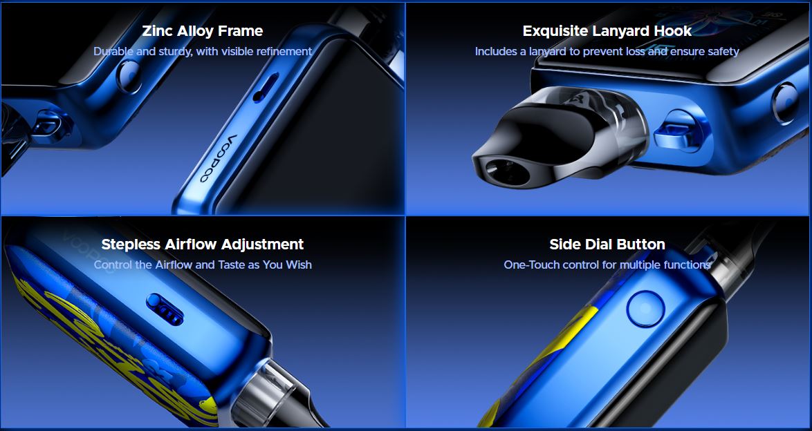 Su chasis reforzado en aleación metálica, su diseño elegante y su calada suave y silenciosa lo convierten en un dispositivo ideal tanto para vapeadores nuevos como experimentados.