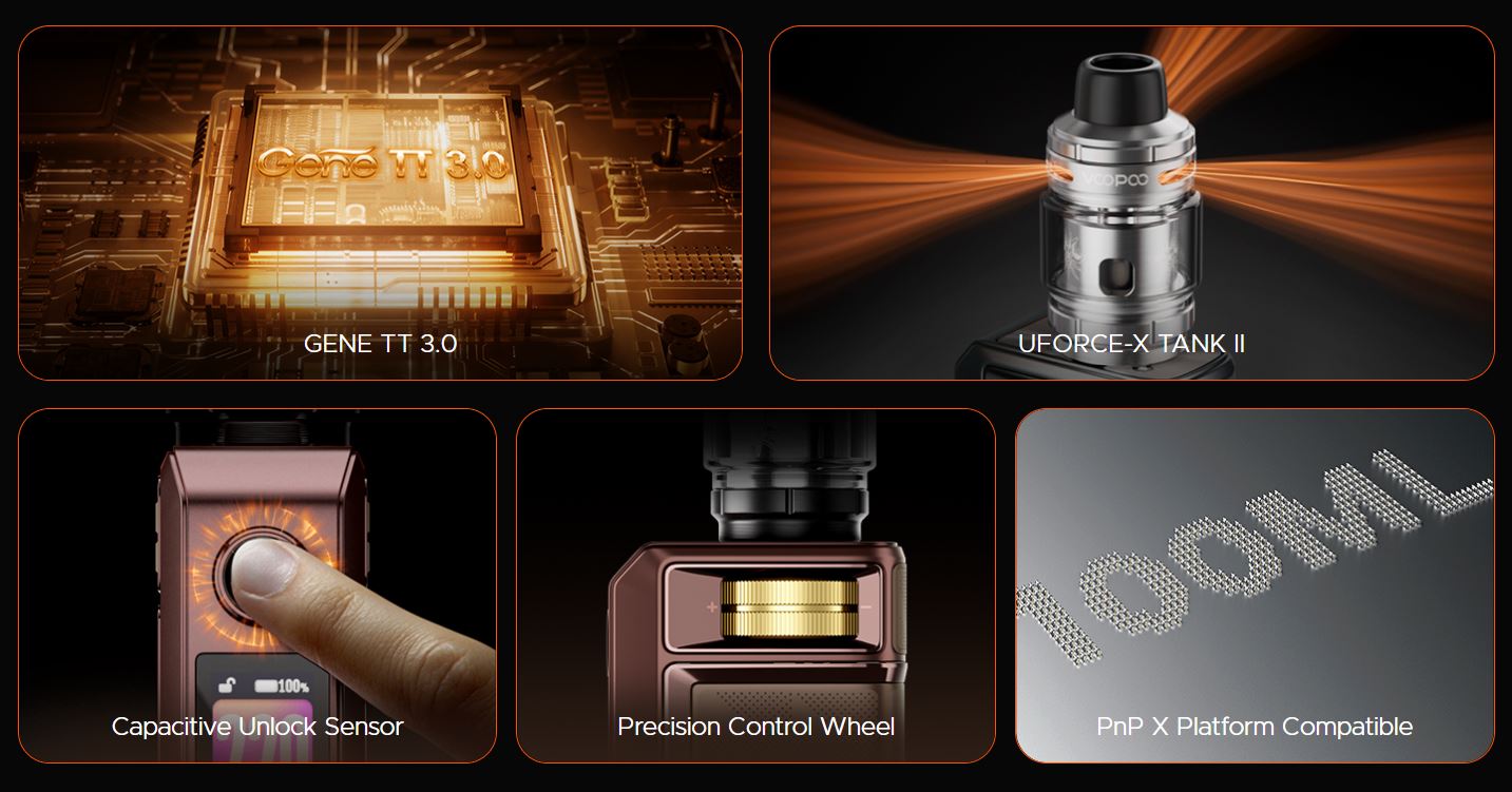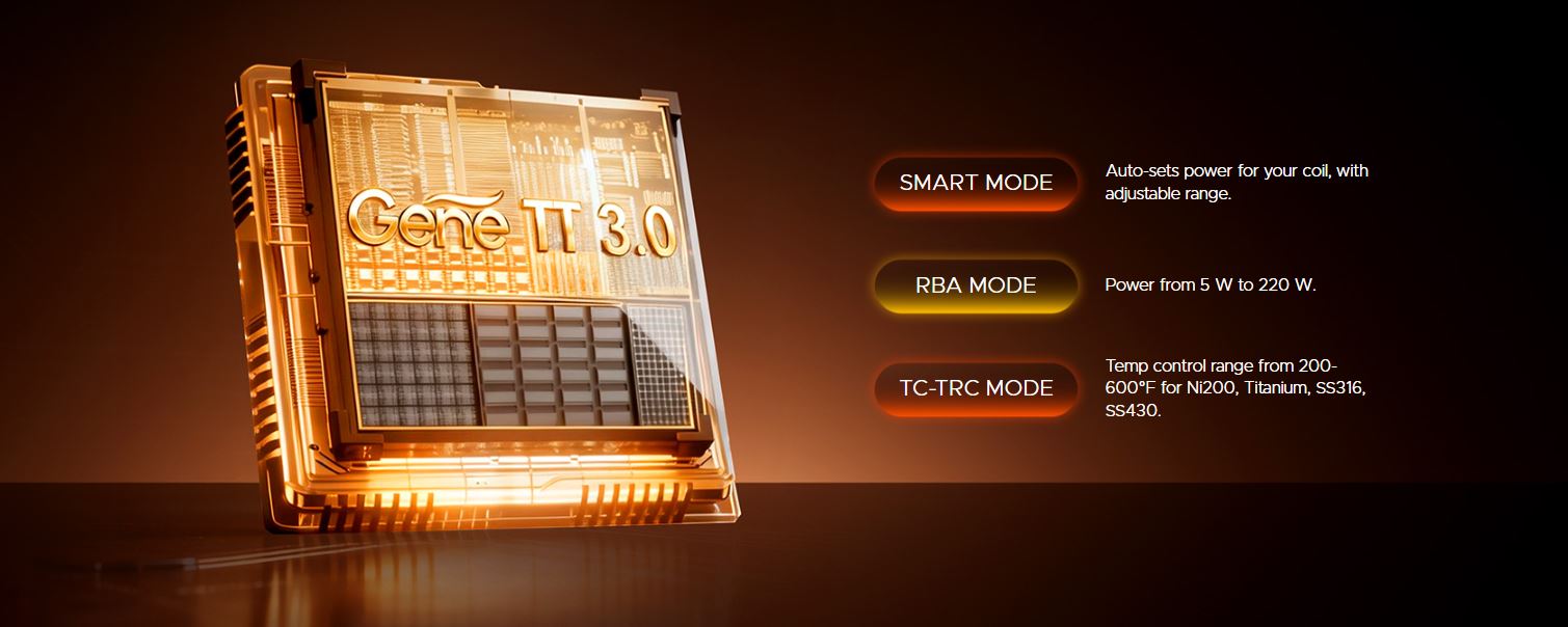 En su interior encontramos el potente chipset GENE TT 3.0, que proporciona una respuesta ultrarrápida, estabilidad y una entrega de potencia precisa. Podrás ajustar la potencia entre 5 y 220 W mediante un dial de control ergonómico, permitiendo una configuración rápida y cómoda.